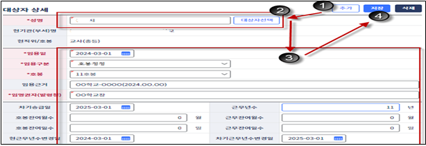 ☞ 호봉획정 경력계산 프로그램에 의한 나이스 수동 입력은 방법1-수동 입력 참고