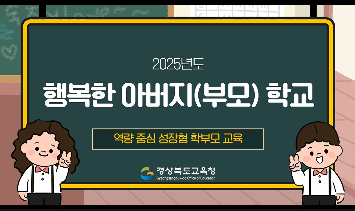 “자녀와 함께 하는 아버지학교” 운영 안내경북교육청에서는 자녀의 건강한 성장 발달을 위한 학부모의 바람직한 교육관 및 역할정립으로 건강한 가족문화 조성하기 위하여 “자녀와 함께 하는 아버지학교”를 운영하니 관심있는 학부모님들께서는 신청하셔서 행복한 시간 되시길 바랍니다1. 경북지역 초등학교 1~3학년 자녀와 아버지(지역별 10가정 20명씩) 2. 교육일시 및 희망지역 신청하기연번지역교육 일시 및 장소신청기간신청하기1안동2025. 12. 6.(토) 14:00~16:00, 안동교육지원청 희망관 3층11. 10.(월) 9:00 ~ 11. 21.(금) 18:002안동2025. 12. 6.(토) 14:00~16:00안동교육지원청 희망관 3층11. 10.(월) 9:00 ~ 11. 21.(금) 18:003영주2025. 12. 13(토) 14:00~16:00영주교육지원청11. 17.(월) 9:00 ~ 11. 28.(금) 18:00클릭3. 선정방법: 지역별 선착순 10가정(개별통지)4. 문의: 경북교육청 학생생활과 학부모교육 담당(054-805-3518)